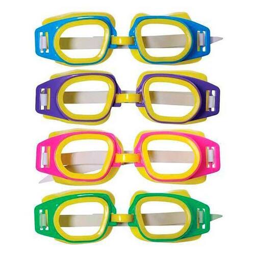 Disponível nas cores azul, lilás, rosa e verde com acabamento em amarelo, o Óculos Sport é o item que faltava para a criançada proteger os olhos durante as brincadeiras na água!