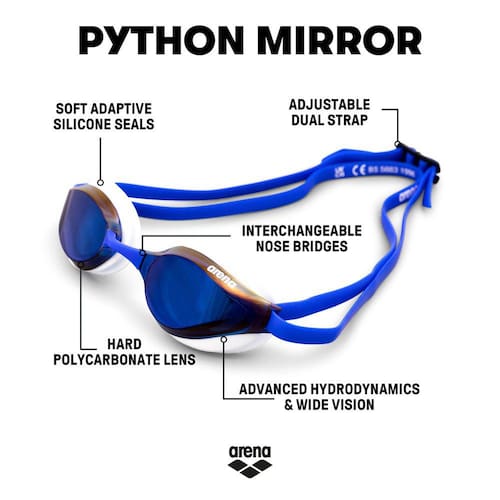 A lente espelhada reduz o brilho do sol ao nadar ao ar livre e em piscinas bem iluminadas; também disponível em uma lente não espelhada para todas as suas necessidades de competição