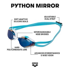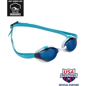 A lente espelhada reduz o brilho do sol ao nadar ao ar livre e em piscinas bem iluminadas; também disponível em uma lente não espelhada para todas as suas necessidades de competição