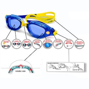 Óculos De Natação Gold Sports Conquest HD 180° de Visão é considerado por muitos o melhor óculos de natação para águas abertas, travessias, maratonas aquáticas , triathlons e aquathlon. projetado para atender às necessidades dos nadadores profissionais, com uma tecnologia anti-fog inovadora que garante uma visão clara, mesmo nas condições mais desafiadoras. Equipado com lentes angular permiti uma visão de 180°, anti-fog e alta definição HD. Nade em águas cristalinas com a ajuda de nossa lente angular, anti-fog, e HIGH DEFINITION que proporcionam uma experiência subaquática nítida .Ajuste confortável: O óculos de natação foi criado com um material de silicone macio e durável que se encaixa confortavelmente ao redor dos olhos sem causar irritação ou desconforto tudo pelo seu frame ser 3D, permitindo que você nade por horas. Possui armação monobloco que facilita o melhor encaixe a qualquer rosto, permitindo uma vedação adequada não irritando a pele e impedindo a entrada de água, o óculos de natação apresentam um design elegante e moderno Suas lentes são em poli carbonato de ultima geração com duas camadas anti-fog e com proteção UVA e UVB400, tiras duplas em silicone ultra soft com ajuste rápido.