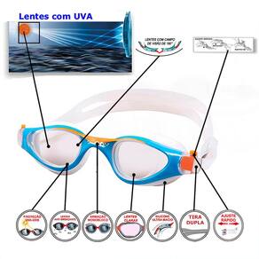O Óculos de Natação Óculos de Natação Gold Sports Junior Champion High Definition são projetados para atender às necessidades dos nadadores profissionais, com uma tecnologia anti-neblina inovadora que garante uma visão clara, mesmo nas condições mais desafiadoras. Equipado com lentes de grande angular, anti-fog e de alta definição: Mergulhe em águas cristalinas com a ajuda de nossa grande angular, anti-fog, e lentes de alta definição que proporcionam uma experiência subaquática nítida e imersiva. Ajuste confortável: Os óculos são criados com um material de silicone macio e durável que se encaixa confortavelmente ao redor dos olhos sem causar irritação ou desconforto, permitindo que você nade por horas.  Armação e tira em silicone liquido de ultima geração ultra confortável e capaz de se adaptar a qualquer formato de rosto. Pode ser facilmente ajustado. Nosso óculos de natação apresentam um design elegante e moderno . Nossos óculos de natação são perfeitos para uma variedade de atividades aquáticas, incluindo natação, mergulho e muito mais. Se você é um iniciante ou um profissional experiente, nossos óculos são projetados para atender às suas necessidades e ajudá-lo a executar o seu melhor. Suas lentes são transparente muito confortavel para picinas, suas lentes são confeccionadas em policarbonato de ultima geração proporcionando uma visão HD, lentes com duas camadas anti-fog, proteção UVA e UVB400 e são curvas proporcionando uma visão angular de 180° a armação em em silicone liquido ultra soft, tiras duplas em silicone liquido ultra soft com ajuste rápido.