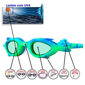 Os Óculos De Natação Gold Sports Little Fashion Fish High Definition 7,0 1. Foram projetado para proteger a saúde dos olhos: Estes óculos de natação são projetados especialmente para crianças que gostam de explorar o mundo com segurança debaixo d'água. Eles protegem a saúde ocular do cloro e água salgada frame em silicone gel ultra confort anti alérgico com excelente vedação. 2. Nossos Óculos de natação são projetados para tem um encaixe perfeito na cavidade ocular da criança, com frame em silicone gel ultra que impede a entrada de água. Eles não são apertados, mas confortáveis de usar 3. Tiras duplas livremente ajustável : A tira pode facilmente ser ajustada para caber e ajustar aperto da cabeça ba cabeça da criança, fazendo os óculos confortáveis e seguros. 4. Lentes clara :Óculos de natação, você pode desfrutar do mundo subaquático de relance. As lentes anti-embaciamento HD evitam que o vapor de água afete a sua visão, dando-lhe uma visão clara e transparente do cenário aquático. Suas lentes são em poli carbonato de ultima geração, com película de proteção UVA e UVB e anti embaçante 5.Conforto: Feito de silicone macio e durável, os Óculos de natação não arranham a pele do rosto ou causam irritação. Eles também são fáceis de limpar. - Materiais: Silicone/poli carbonato - Características do produto: Tira ajustável lentes anti-fog em poli carbonato de alta definição possui pelicula protetora UVA UVB - Tamanho do produto: sobre 15cm/5.91in de comprimento - Marca: Gold Sports - Garantia: 30 dias após sua compra somente contra defeito de fabricação