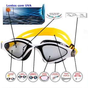 O Óculos de Natação Gold Sports Shark Performance 7.0 High Definition são projetados para atender às necessidades dos nadadores profissionais, com uma tecnologia anti-neblina inovadora que garante uma visão clara, mesmo nas condições mais desafiadoras. Equipado com lentes de grande angular, anti-fog e de alta definição: Mergulhe em águas cristalinas com a ajuda de nossa grande angular, anti-fog, e lentes de alta definição que proporcionam uma experiência subaquática nítida e imersiva. Ajuste confortável: Os óculos são criados com um material de silicone macio e durável que se encaixa confortavelmente ao redor dos olhos sem causar irritação ou desconforto, permitindo que você nade por horas. Armação e tira em silicone liquido de ultima geração ultra confortável e capaz de se adaptar a qualquer formato de rosto. Pode ser facilmente ajustado.Nossos óculos de natação apresentam um design elegante e moderno que é certo para virar a cabeça na piscina. Com uma escolha de cores elegantes e um ajuste de perfil baixo, você vai olhar e se sentir bem como você deslizar através da água. Uso versátil. Nossos óculos de natação são perfeitos para uma variedade de atividades aquáticas, incluindo natação, mergulho, Triatlo e muito mais. Se você é um iniciante ou um profissional experiente, nossos óculos são projetados para atender às suas necessidades e ajudá-lo a executar o seu melhor. Suas lentes são transparente muito confortavel para picinas fechadass, suas lentes são confeccionadas em policarbonato de ultima geração proporcionando uma visão HD, lentes com duas camadas anti-fog, proteção UVA e UVB400, armação em em silicone liquido ultra soft, tiras duplas em silicone ultra soft com ajuste rápido.