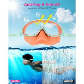 - ?Fitness, macio e vazamento? Os óculos de natação infantis Keary para 3 a 12 anos são feitos com uma escolha de silicone inodoro. É seguro para crianças. O silicone macio é utilizado ao redor do rosto e não deixa marcas após o uso. A curvatura do silicone é especialmente projetada para caber ao redor do rosto, adequada para todos os formatos de rosto, e esta curvatura é ainda mais à prova de sucção e vazamento!