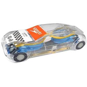 Vem em embalagem no formato de carrinho, excelente para brincar na praia ou beira da piscina.