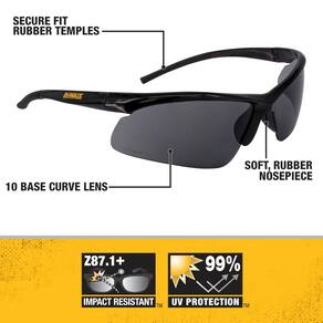 DEWALT Óculos de segurança DPG51-2C Radius Smoke 10 Base Curve Lens Protective - A lente curva de 10 bases oferece máxima cobertura e proteção. - As hastes com ponta de borracha proporcionam um ajuste seguro e confortável. - O nariz de borracha macio oferece uso antiderrapante e confortável. - Lentes de policarbonato resistentes oferecem resistência a impactos.