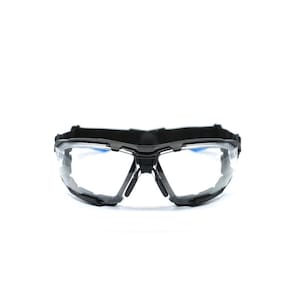 — ANSI Z87.1 e EN 166 — Lente transparente antiembaçante e antiarranhões — Junta protetora removível — Faixa de cabeça ajustável — Almofadas nasais ajustáveis de TPR