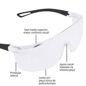 Com ampla visão periférica, esses óculos aumentam a consciência situacional do usuário, proporcionando uma experiencia segura e eficaz no ambiente de trabalho.