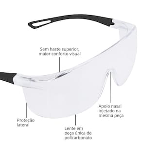 Com ampla visão periférica, esses óculos aumentam a consciência situacional do usuário, proporcionando uma experiencia segura e eficaz no ambiente de trabalho.