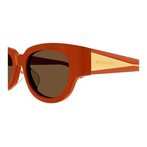 Os óculos de sol BOTTEGA VENENTA BV1278SA 004 com uma armação de acetato na cor laranja e lentes na cor marrom, são sinônimo de elegância e sofisticação.