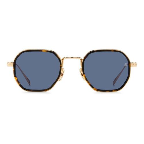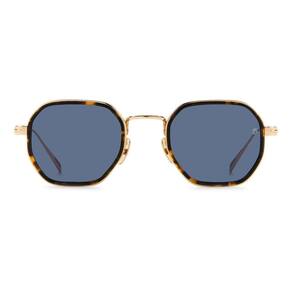 David Beckham modelo DB1097S 06J em metal dourado e lentes cosméticas na cor azul reflete todo o estilo de David Beckham. O monograma da marca está gravado na lente esquerda dos óculos de sol. Cada detalhe destaca a essência da elegância e sofisticação de David Beckham.