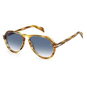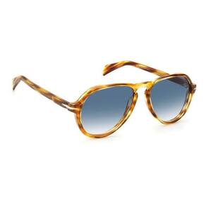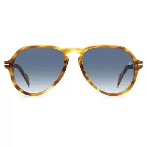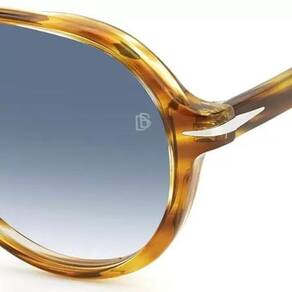 David Beckham modelo DB7079 KVI estilo aviador na cor marrom com lente na cor azul, reflete todo o estilo de David Beckham. O monograma da marca está gravado na lente esquerda dos óculos de sol. Cada detalhe destaca a essência da elegância e sofisticação de David Beckham.