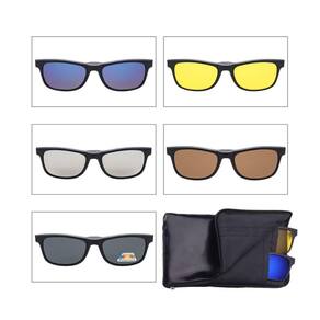 Óculos de sol escuro polarizado clip on 6 em 1 sobrepor - Preto