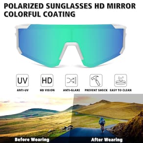 STORYCOAST Óculos de sol esportivos polarizados para homens e mulheres, óculos de sol para dirigir, pesca, ciclismo, mountain bike, proteção UV400, Armação branca - Lente espelhada verde - Lentes polarizadas TAC HD – 99% de revestimento de proteção UV400, bloqueia 99% dos raios UVA e UVB prejudiciais. Restaura a cor verdadeira, elimina a luz refletida e a luz dispersa, torna o cenário mais claro e macio e protege os olhos perfeitamente. As lentes de policarbonato são resistentes a impactos, arranhões e inquebráveis. - STORYCOAST Tecnologia de armação - a armação é leve, muito flexível, resistente ao calor e resistente aos raios UV. A armação resistente e leve com almofadas de nariz antiderrapantes melhora o conforto de uso. Adequado para todos os formatos de rosto, adequado para todos os tipos de esportes ao ar livre. - STORYCOAST Tecnologia da lente - a tecnologia de revestimento à prova d'água e hidrofóbico pode proteger a lente espelhada da corrosão da água. Pode bloquear o brilho refletido e reduzir a fadiga ocular. Os revestimentos coloridos podem melhorar a visão e o contraste, e têm alta definição, resistência a impactos e resistência a arranhões. - A melhor escolha para esportes ao ar livre - melhor para ciclismo, escalada, pesca, passeios de barco, vela, esqui aquático, dirigir, correr, caminhar e viajar. Mesmo que você use o dia todo, dificilmente sentirá isso. Este é o seu companheiro confiável quando você está ao ar livre. - Insistimos em prestar atenção à qualidade do produto. Se você tiver algum problema de qualidade ou não estiver satisfeito, resolveremos seriamente o problema para você até você.