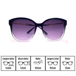 Belíssimo óculos de sol feminino com degradê transparente. Fabricado em acetato, possui uma excelente resistência e as lentes vêm com proteção UV400, que além de conforto garantem proteção completa contra os raios solares. Suporta lentes de grau, aconselhável até 7 graus. Enviamos para todo o Brasil. Modelo de tamanho grande, seguem as medidas: Aro tamanho da lente : 5,6 centímetros. Ponte parte onde se localiza o apoio do nariz : 1,5 centímetros. Haste perninha do óculos : 13,5 centímetros. Frente do óculos: 13,5 centímetros. Marca: Não Informado Ean: 7795365510655