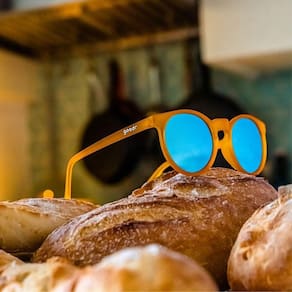 O Óculos de Sol Polarizado Freshly Baked Man Buns da Goodr é ideal para você que pratica corridas ao ar livre. Com estrutura reforçada e revestimento especial, o óculos não escorrega no rosto e é super confortável.