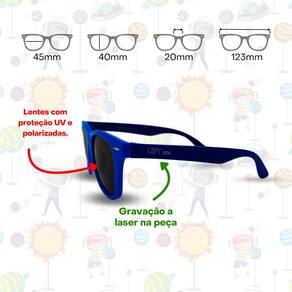 Óculos de Sol Infantil Lupy Kids - Proteção UV e Conforto Garanta proteção e estilo para seus pequenos com os óculos de sol Lupy Kids Projetado especialmente para crianças, este modelo oferece lentes com proteção UV 400 que bloqueiam 100% dos raios UVA e UVB, garantindo segurança máxima contra os efeitos nocivos do sol. Além disso, suas lentes polarizadas proporcionam uma visão mais clara e confortável, minimizando o reflexo de superfícies como água e asfalto, ideal para atividades ao ar livre. A é feita de TR-90, um material de polímero super leve, flexível e com memória, garantindo que os óculos resistam ao dia a dia ativo das crianças, sem comprometer o conforto. Seu design flexível evita quebras e proporciona mais durabilidade, além de garantir que os óculos se ajustem perfeitamente ao rosto. Dimensões: Largura da lente: 45mm Altura da lente: 40mm Largura total da : 123mm Ponte: 20mm Características principais: Lentes com proteção UV 400 e polarizadas leve e flexível em TR-90 Gravação a laser na , agregando um toque especial Disponível em diversas cores vibrantes e divertidas para agradar o gosto dos pequenos Perfeito para proteger a visão das crianças e permitir que elas aproveitem o sol com segurança e estilo. Seja para um passeio no parque, na praia ou para o dia a dia, os óculos de sol Lupy Kids são a escolha certa para os pais que priorizam qualidade e design. Marca: Não Informado