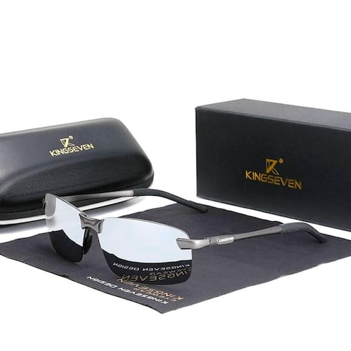 Óculos de Sol Kingseven Polarizado Design Quadrado Aluminio Sem Aro com Proteção Uv400