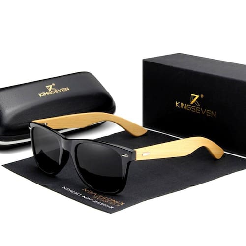 Óculos de Sol Kingseven Vintage Hastes de Madeira com Proteção Uv400 - Preto - Único