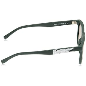 Óculos de sol Lacoste. Número da série: L929SE. Código de cores: 315. Forma: Retangular. Largura da lente: 53 mm. Ponte de lente: 19 mm. Comprimento do braço: 145 mm. 100% de proteção UV. Não polarizado. Material da moldura: plástico. Cor da moldura: verde fosco. Tipo de lente: cinza. Estilo do aro: aro inteiro. Código UPC/EAN: 886895463317. Óculos de sol unissex retangulares Lacoste Grey L929SE 315 53.