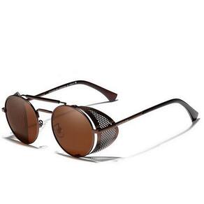 Óculos de Sol Masculino Redondo Steampunk Kingseven Proteção Polarizados UV400 Anti-Reflexo N7550