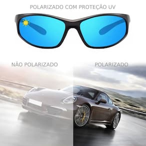 Óculos de sol polarizado proteção uv preto masculino Os óculos de sol esportivos são ideais para a prática de esportes de alta performance e podendo ser também no dia a dia. Seu design frontal com linhas ousadas e modernas que se encaixa perfeitamente em diversos formatos de rosto. As lentes são polarizadas proporcionando uma visão mais nítida e confortável. Garantindo proteção máxima contra os raios nocivos do sol uva/uvb 400nm reduzindo o risco de desenvolvimento das doenças oculares e proporcionando o máximo de saúde para os seus olhos. A é super resistente, leve e confortável. Com apoio nasal e ponteiras de material emborrachado, proporciona um efeito antiderrapante. Seu formato foi projetado para não deixar a claridade entrar pelas laterais, sendo assim, ideal para qualquer atividade. - Itens inclusos: Estojo de tecido poliéster + microfibra. Confira as medidas na foto do anuncio Qualquer dúvida estamos a disposição no campo de perguntas. Agradecemos, boas compras Equipe oculos20v Marca: Não Informado