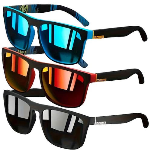 Conjunto 3 óculos De Sol Preto Azul e Vermelho Masculino Polarizado