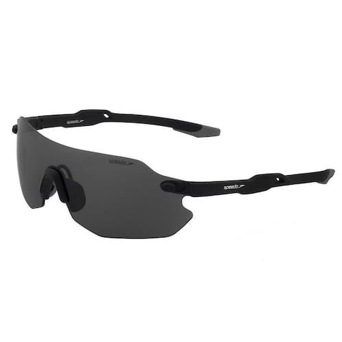 A Speedo também projeta óculos de sol para aqueles que amam esportes de todos os tipos, de escalada a ciclismo. Este estilo se destaca pela moldura frontal em escudo, que protege o rosto e os olhos com suas lentes cinzas escuras em formato aerodinâmico retangular e com as hastes flexíveis projetam um exclente caimento no rosto. A estrutura de policarbonato vermelho é excepcionalmente leve, mas também bastante estável durante o movimento, graças às inserções de borracha nas almofadas do nariz.