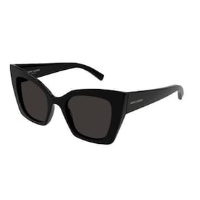 Óculos de sol feminino SAINT LAURENT SL 552/001/51 em formato Oversized. São confeccionados em Acetato robusto na cor preta com lentes na cor preta. Proteção UV 400; Lente de policarbonato, resistente a arranhões; Dobradiça óptica de alta qualidade; em acetato, moldável ao rosto; Incluí pano de limpeza e estojo rígido. Medidas: Frontal: 179 mm x 5,6mm Haste: 140mm Cor da lente: Preto Cor da : Preto Tamanho: 51 Marca: Não Informado