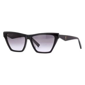 Óculos de sol feminino SAINT LAURENT YSL M103/001 modelo Em formato CAT. São confeccionados em Acetato na cor preta com lentes na cor cinza degradê. Um dos clássicos da Grife e queridinho das fashionistas. Proteção UV 400; Lente de policarbonato, resistente a arranhões; Dobradiça óptica de alta qualidade; em acetato, moldável ao rosto; Incluí pano de limpeza e estojo rígido. Medidas: Frontal: 140 mm x 5,1mm Haste: 140mm Cor da lente: Cinza degradê Cor da : Preto Tamanho: 53 Marca: Não Informado