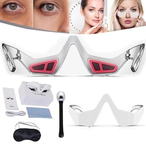 Óculos massageadores de terapia de luz vermelha sob os olhos, microcorrente, luz vermelha LED, dispositivo de beleza, massageador sob os olhos, removedor de bolsas de olhos para reduzir olheiras, inchaço e rugas, relaxar a tensão ocular -?Óculos de luz vermelha Revital Eyes?Utilizando tecnologia avançada de luz vermelha, este massageador ocular alivia eficazmente a fadiga ocular, reduz o inchaço e diminui as olheiras, deixando seus olhos mais brilhantes e jovens. -?Design funcional?Este produto não só cuida da pele dos olhos, mas também tem uma variedade de funções. Pode ajudar a relaxar a pele dos olhos e reduzir a fadiga usando o dispositivo de massagem. Além disso, é equipado com uma função de compressão térmica que ajuda a abrir e fortalecer a área dos olhos, melhorando a absorção dos produtos para a pele. -?Portátil e fácil de usar?Com um design elegante e compacto, este dispositivo oftalmológico é fácil de transportar e pode ser utilizado a qualquer hora, em qualquer lugar, sem restrições de tempo ou lugar. Seja em casa, no escritório ou em qualquer lugar, desfrute de uma massagem relaxante nos olhos sem esforço. -?Higiene e fácil de limpar?O massageador ocular foi projetado pensando na higiene. Ele vem com acessórios fáceis de limpar que podem ser lavados regularmente para garantir que o produto seja sempre higiênico e atenda às suas necessidades de manutenção. -?Presente perfeito?Este massageador de olhos será um ótimo presente para mulheres, mães, esposas, namoradas e qualquer ente querido para desfrutar de um relaxamento profundo dos olhos todos os dias. Presente ideal para aniversários, Natal, festas, Halloween, Ação de Graças e Ano Novo