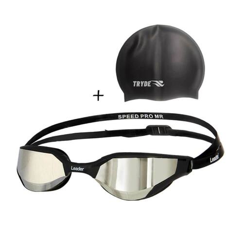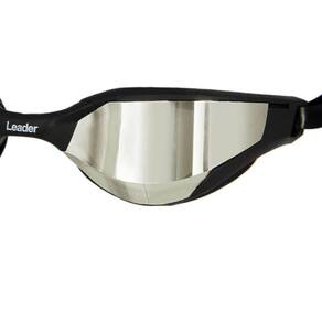 Contém: 1 – Óculos de Natação Espelhado prata Leader Speed Pro 3 – Opções de tamanho de narigueiras 1 – Embalagem de acrílico 1-Touca preta