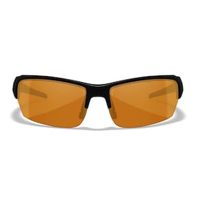 Óculos táticos de tiro Wiley X Saint CHSAI07 com armação preta fosca e lentes balísticas intercambiáveis em cinza fumê e transparente.