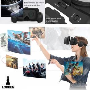 Experimente a realidade virtual de forma simples, divertida e acessível com os Óculos de Realidade Virtual 3D com Fone de Ouvido Lorben.Basta encaixar seu smartphone nos Óculos VR para você ser transportado para a realidade virtual. Você vai se colocar em ação em jogos, filmes e muito mais! As possibilidades de diversão são ilimitadas.Explore o desconhecido e aprenda sobre diferentes lugares experimentando-os como se estivesse realmente lá. Um presente perfeito para tanto para crianças e quanto adultos.Pequeno, leve e portátil, tem estofamento de couro sintético macio e respirável, fácil de limpar, que proporciona conforto mesmo depois de horas utilizando os Óculos VR. Possui suporte de cabeça flexível com alça ajustável em forma de T, feita de material leve, que pode diminuir a pressão em torno de seus olhos, rosto e cabeça, tornando o uso ainda mais cômodo. Além disso, a área do nariz é aprofundada, reduzindo a pressão sobre o nariz. A capa frontal removível ajuda na dissipação de calor e o interior é revestido de espuma macia para proteger a tela de seu smartphone contra arranhões.Compatível com maioria dos smartphones com tela de 4,7 a 6,5 polegadas iOs ou Android.Dispõe de lentes protetoras de luz azul, que melhoram o contraste claro, bloqueando cerca de 72% desta luz prejudicial, aliviando a fadiga ocular. O ajuste das lentes é feito de modo independente, movendo-se os botões localizados na parte superior dos Óculos VR. A distância pupila-objeto ajustável dispensa o uso de óculos de grau para usuários com miopia abaixo de 6,0° dioptria.As lentes asféricas de resina HD ajudam a reduzir ou até mesmo eliminar distorções, diminuindo a sensação de vertigem e fornecendo imagens de alta resolução. Marca: LorbenCor: PretoMaterial: Plástico ABS e lente de resinaPlataforma compatível: iOs/Android/WinSuporte para telefone celular: telas de 4,7" a 6,5"polegadasLente: Lente asférica de alta transmitânciaDiâmetro da lente: 40mmNitidez: 99%Visibilidade: 100%Diferença de cor: 0,38mmFormato de vídeo: 3D esquerda-direitaGrande angular: 100°Distância focal: AjustávelAjuste de miopia: 0 - 6,0°Ajuste de hipermetropia: 0 - 5,0°Ajuste de distância do objeto: 44mm - 53mmAjuste de distância Inter pupilar: 60mm - 67mmSensibilidade para fone de ouvido: 112dB/mwFaixa de resposta de frequência: 20 - 20000HzImpedância: 320 ohmPotência: até 50m/WConector de fone de ouvido: P2 3,5mmTeclas de função: Volume e pausa de reproduçãoInclui:1 Óculos VRPano para limpeza das lentesManual do usuárioDimensões do produto: 22x18x9,5cmPeso dos óculos VR: 450gTamanho da embalagem: 21,5x23x10,8cmPeso da embalagem: 590gCódigo do produto: 6032IMPORTANTE: A qualidade da imagem depende da resolução de seu smartphone e da qualidade do vídeo.Para melhores resultados, aumente o brilho do seu telefone e cancele o "ajuste de brilho automático".Baixe o app VR na loja de aplicativos móveis. Todos os apps VR são comuns a este produto.Para usar o gamepad, você precisa conectá-lo ao smartphone via Bluetooth.Imagens ilustrativas. As tonalidades podem variar. O aparelho não acende luzes externas.