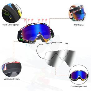 IMPORTANTE: Se for um produto elétrico, ele pode ser compatível com uma tomada de 110 volts. Se utilizado fora dos Estados Unidos, pode ser necessário um conversor de voltagem para garantir a operação adequada. Verifique se o produto que você está comprando é elétrico antes de considerar essas informações. Espuma respirável: a espuma é respirável, macia, confortável para caber no rosto, com sistema de ventilação que pode manter a visão clara. - Aplicação: Os óculos de motocross são utilizados para bicicletas sujas, motocicletas, motocross, mtb, equitação, offroad, corrida, quadriciclo, esqui, esportes motorizados ao ar livre, etc. - Alça ajustável: a alça ajustável dos óculos de motocicleta serve para diferentes tamanhos de cabeça ou capacete para jovens, adultos, mulheres, homens. - Lente transparente antiarranhões: as lentes dobráveis de PC são antiarranhões, lentes de visão nítidas, à prova de vento e poeira - Estrutura dobrável durável: os óculos de bicicleta suja com estrutura em ABS são dobráveis. - Espuma respirável: espuma respirável de óculos de quadriciclo, confortável para caber no rosto.