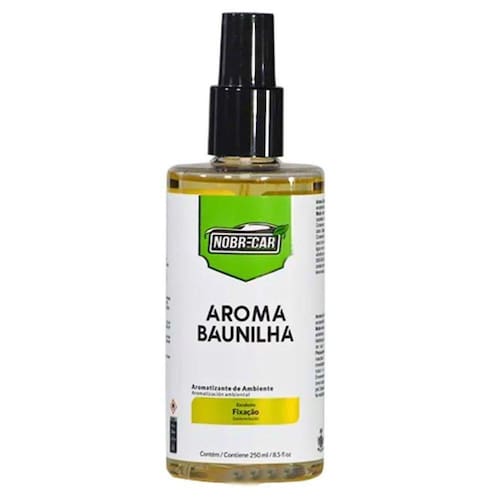 Odorizador De Ambientes Aroma Baunilha Nobrecar 250ml Produto desenvolvido para uso veicular, com fragrância resistente ao calor e luz solar. Caso a exposição do produto tenha menor incidência de alta temperatura, luz e vento, sua durabilidade poderá aumentar. Estação do ano, região demográfica e exposição do carro à intempéries locais impactam diretamente na exalação e durabilidade do perfume. MODO DE USAR: 1- Remova a tampa; 2- Acione o spray e direcione o jato para tecidos, carpetes e ambientes. - PRECAUÇÕES - Não deixe o papel perfumado em contato com áreas e superfícies de plástico, couro, tecido, madeira e etc - esse contato direto causará manchas e pode até danificar; - Mantenha fora do alcance de crianças e animais domésticos. Produto sem sabor e não comestível. Em caso de irritação com a pele ou contato acidental com os olhos, lave com água em abundância e procure um médico imediatamente. Embalagem totalmente descartável e reciclável. CONTEÚDO: 250 ML Ean: 7898961406565