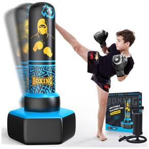 Presente Perfeito para Crianças: Esta bolsa de pancadas inflável azul da ODOSOLA mede aproximadamente 170 cm de altura e acompanha luvas de boxe e uma bomba manual para inflar. É o presente ideal para aniversários ou Natal para crianças a partir de 3 anos, especialmente para aquelas que gostam de artes marciais como caratê e taekwondo.