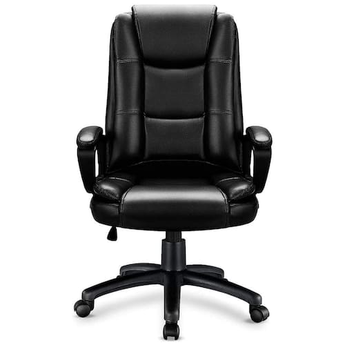Atualize o encosto alto para aliviar a fadiga De acordo com o design ergonômico de atualização das vértebras cervicais, nossa cadeira de mesa reduzirá a dor nas costas e nas vértebras quando você estiver trabalhando por muito tempo, o encosto alto acolchoado segmentado e o assento com ultra amortecimento proporcionam extremo conforto experiência, esta cadeira de escritório ergonômica é a melhor escolha de periartrite do ombro. Cadeira executiva de couro de segurança A cadeira de escritório de couro embala seu corpo com couro macio e uma almofada de assento de espuma acolchoada dupla, capacidade de peso de 180 kg, apoio de braço acolchoado para uma aparência sofisticada e conforto máximo que você pode afundar nela, esta cadeira executiva melhorará sua eficiência no trabalho, trabalho e descanso andam juntos. Altura ajustável com apoio de braço Esta cadeira tem uma distância entre eixos de nylon resistente, 4 polegadas de altura ajustável e rodas rolantes de 360 em nossa cadeira de escritório em casa são flexíveis e adequadas para o ambiente do seu escritório. A função de inclinação com trava de posição e ajuste traseiro de 110, SEGURA E CONFORTO, estão prontas para o descanso do seu escritório, perfeitas para casa, escritório e mesa do chefe Fácil de configurar Vem com todo o hardware e ferramentas necessárias, esta cadeira de mesa para computador é fácil e rápida de montar de acordo com as instruções da embalagem, são necessários apenas 10 a 15 minutos para concluir todo o processo de instalação Marca: Não Informado