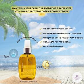 Este óleo bifásico em spray é indicado para todos os tipos de cabelo que buscam proteção solar.