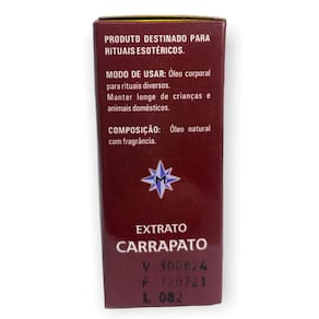 ADQUIRA ESTE ÓLEO MARAVILHOSO E GANHE UM LINDO PRESENTE autêntico Óleo Extrato de Carrapato Agarra Homens 10 ml O Oléo Extrato Carrapato Agarra Homens da Bialluz, é óleo ideial para que você conquiste o seu grande amor. O frasco possui 10 ml, recomendamos que você use diretamente na sua roupa quanod estiver próximo da pessoa amada e também utilize em um rechaud ou difusor quando estiver distante do seu amor sempre mentalizando a pessoa vindo em sua direção. A combinação de essências sagradas aumenta seu magnetismo pessoal. Modos de usar:- Pingue 3 gotas em sua roupa ou objetos levados junto ao corpo.- Pingue 8 gotas dessa essência num rechô, queimador ou difusor de essências e deixe o aroma espalhar no ambiente de trabalho e cômodos de sua casa. Enviamos o seu pedido em até 24 horas após a confirmação de pagamento! Caso tenha alguma dúvida nos mande mensagem que respondemos rapidinho para te ajudar da melhor forma possível! Marca: META venda em lote