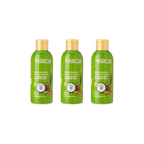 Esse kit contém: 3 Oleo Cabelo e Corpo Marcia 90ml Coco Descrição O Óleo Cabelo e Corpo Márcia Coco 90ml é formulado para proporcionar hidratação intensa e nutrição tanto para os cabelos quanto para a pele. Enriquecido com óleo de coco, conhecido por suas propriedades hidratantes e reparadoras, este produto ajuda a restaurar a umidade natural, deixando a pele macia e os cabelos brilhantes e saudáveis. Sua textura leve é rapidamente absorvida, sem deixar resíduos, garantindo um toque suave e sedoso ao longo do dia. Modo de Uso Aplique o Óleo Cabelo e Corpo Márcia Coco na pele ou nos cabelos secos ou úmidos. Para a pele, use após o banho ou sempre que sentir necessidade de hidratação, espalhando uniformemente. Nos cabelos, aplique do comprimento às pontas, evitando a raiz, para um toque extra de brilho e maciez. O uso contínuo proporciona uma sensação de bem-estar e cuidados, mantendo a pele e os cabelos sempre saudáveis.
