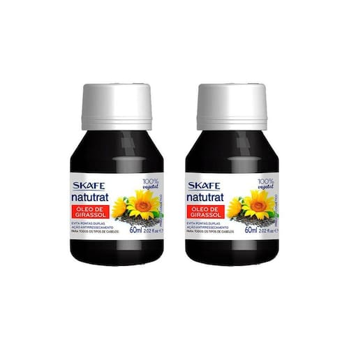Descrição: Óleo Capilar Skafe Natutrat 60ml Girassol é um produto de cuidado capilar da marca Skafe. Ele é formulado com óleo de girassol, o que significa que é enriquecido com as propriedades benéficas do óleo extraído das sementes de girassol. Esse óleo capilar é conhecido por oferecer diversos benefícios para o cabelo. Ele pode ajudar a hidratar os fios, tornando-os mais macios, brilhantes e maleáveis. Além disso, o óleo de girassol também pode auxiliar na redução do frizz e das pontas duplas, tornando o cabelo mais fácil de pentear e controlar. Outra vantagem do óleo capilar Skafe Natutrat Girassol é a sua capacidade de proteger o cabelo contra danos causados por agentes externos, como a poluição e os raios solares, atuando como uma barreira protetora. Modo de usar: Lave bem o cabelo com shampoo e condicionador, como de costume. Com os cabelos ainda úmidos, aplique uma pequena quantidade do óleo capilar Skafe Natutrat na palma das mãos. Espalhe o óleo capilar entre as mãos e aplique-o ao longo do comprimento dos cabelos, evitando a raiz. Massageie suavemente para garantir que o óleo seja bem distribuído por todos os fios. Não é necessário enxaguar o cabelo após a aplicação do óleo capilar. O óleo capilar Skafe Natutrat pode ser utilizado tanto em cabelos secos quanto úmidos. Ean: 7908825705588