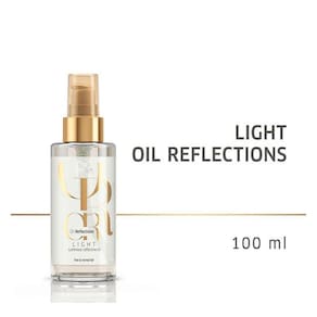 O Óleo Capilar Wella Professionals Oil Reflections Reflective Light é indicado para cabelos finos à normais. Possui textura leve que nutre, protege e deixa o cabelo macio e com efeito gloss luminoso. Além disso, possui tecnologia que deixa a sensação de fios mais densos, nutrindo os fios na medida e deixando o cabelo com brilho instantâneo. Pode ser usado para proteger dos danos causados por química, como pré-shampoo e tratamento noturno. Benefícios: - Textura leve; - Nutre instantaneamente os fios; - Brilho intenso. Resultado: Cabelo nutrido, macio e luminoso, sem pesar. Modo de usar: Aplique nos fios quando desejar, comprimento e pontas. Você pode usá-lo adicionando algumas gotas à máscara da linha, aumentando a reparação e garantindo maior maleabilidade.