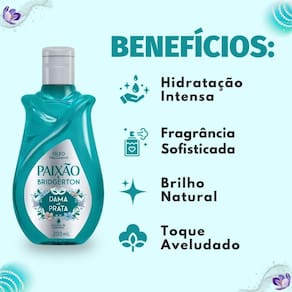 Descubra a elegância e o encanto com o Óleo Corporal Paixão Bridgerton Dama De Prata 200ml da marca PAIXÃO. Inspirado na sofisticação da era Bridgerton, este óleo corporal foi cuidadosamente desenvolvido para proporcionar uma experiência sensorial única, envolvendo sua pele em uma fragrância cativante e um toque de maciez. Ideal para quem busca um cuidado diário que transcende a rotina, transformando cada aplicação em um momento de puro deleite e autoconfiança. Permita que este óleo corporal transforme seus cuidados diários em um ritual de beleza digno da realeza, deixando sua pele irresistivelmente macia e perfumada.