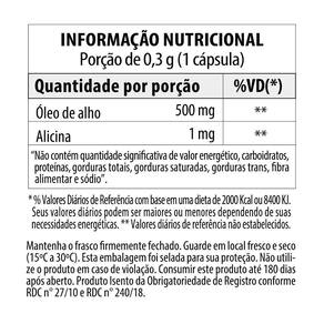 Óleo de alho 500mg odor free com 100 caps. O alho é definido como um alimento funcional e quando consumido como parte da dieta usual possui efeitos benéficos à saúde e às defesas do corpo. Apresentação: 100 cápsulas; recomendação de uso: 1 cápsula ao dia;