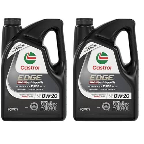 Castrol Edge High Mileage 0W-20 Óleo de motor totalmente sintético avançado, 5 quartos (pacote com 2) - As informações abaixo são apenas por pacote - Tecnologia patenteada de substituição de fósforo para ajudar a prolongar a vida útil do seu sistema de emissão - Desempenho 10 vezes melhor em alta temperatura, conforme medido no teste de motor Sequence IIIH vs. limite de teste API SP - 6 vezes melhor proteção contra desgaste, conforme medido no último teste de motor Sequence IVA - 1,4 x melhor proteção contra lamas, conforme medido no teste de motor Sequence VH vs. limite de teste API SP - Atende ao ILSAC GF-6 para evitar pré-ignição de baixa velocidade (LSPI) e proteção contra desgaste da corrente de distribuição
