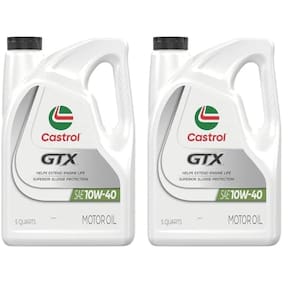 Castrol GTX 10W-40 Óleo de motor convencional, 5 quartos, pacote com 2 - As informações abaixo são apenas por embalagem - Tecnologia exclusiva TriShield oferece proteção superior de depósito - Proteção máxima contra viscosidade e quebra térmica - Ultra baixo atrito para melhorar a quilometragem do gás; Cor da garrafa: Branco - Aditivos premium personalizados permitem desempenho avançado - Excede o ILSAC GF-5, API SN