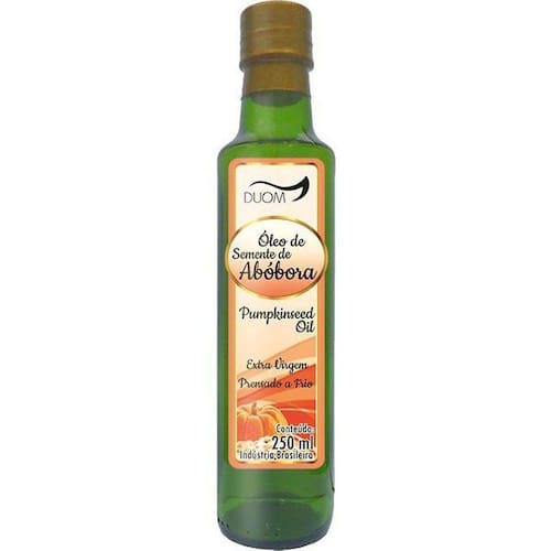 Óleo De Semente De Abóbora 250Ml DuomÓleo vegetal extraído das sementes de Gergelim, prensado a frio e extra virgem. Fonte de Ômegas 6. Ingredientes: Óleo de Sementes de Abóbora. Sugestão de uso: Possui sabor suave podendo ser adicionado a diversos tipos de alimentos que consumimos no nosso dia-a-dia. Conteúdo: 250mlRegistro: Produto dispensado de registro RDC 27/2010.
