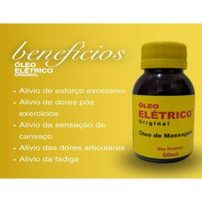 O Óleo Elétrico é um óleo próprio para massagem. O modo de uso é simplesmente passar um pouco do óleo na área afetada e massagear suavemente até que seja completamente absorvido pela pele. É importante ter em atenção as seguintes advertências: Não aplicar em pele irritada ou lesada e manter fora do alcance das crianças.