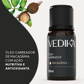 Óleo Essencial Carreador Vedika Macadâmia - 10ml O óleo carreador Vedika de Macadâmia é 100% puro e natural, com aroma de ação nutritiva e antioxidante. Recomendado para diluir os demais óleos essenciais Vedika, para que assim possam ser utilizados diretamente na pele.